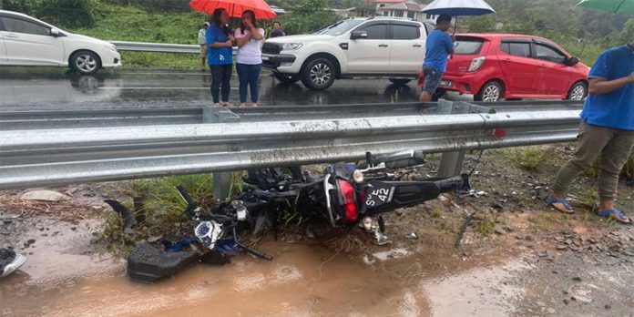 “Ketika kejadian hujan sangat lebat dan kenderaan pacuan empat roda yang gagal dikawal terus terbabas dan merempuh motosikal mangsa.