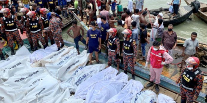 இதுவரை 23 சடலங்கள் மூழ்கிய படகில் இருந்து மீட்கப்பட்டிருக்கின்றன என்று தீயணைப்பு படையின் அதிகாரி எனாயெட் ஹொசைன் குறிப்பிட்டிருக்கிறார்.