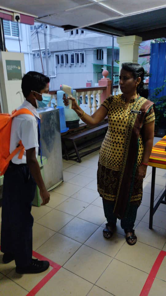 இதனிடையே அப்பள்ளியின் காவல்துறை தொடர்ப்பு அதிகாரியான சார்ஜான் மேஜர் ராஜேந்திரன் கந்தசாமி, நேற்று பள்ளிக்கு வந்திருந்த மாணவர்கள் அனைவரும் முகக்கவசம் அணிந்திருந்த்தை காணமுடிந்தது. அவர்கள் ஒவ்வொருவரின் உஷ்ண நிலையை ஆசிரியர்கள் பரிசோதனை செய்தார்கள். வகுப்பு வாரியாக மாணவர்களின் விபரங்கள் பதிவு செய்யப்பட்டது. முன்னதாக செனிடைஷர் திராவியத்தை கொண்டு மாணவர்கள் தங்கள் கைகளை கழுவிக் கொண்டார்கள்.
