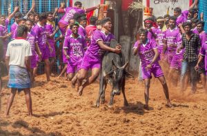 ஜல்லிக்கட்டை மையப்படுத்தி உருவாக்கப்பட்ட விளையாட்டு கபடி. எதிரணிக்கு செல்லும் வீரர் மாட்டைப்போல் கருதப்படுவார். அவ்வீரரை தொடவிடாமல் மடக்கி பிடிப்பது, மாட்டை முட்ட விடாமல் அடக்குவதற்கு சமமாகும். ஒரு அணியில் இருந்து யாரேனும் ஒருவர் புறப்பட்டு நடுக்கோட்டைத் தொட்டுவிட்டு ஒரே மூச்சில் “கபடிக் கபடி” அல்லது “சடுகுடு” என்று விடாமல் கூறிக் கொண்டே எதிர் அணியினர் இருக்கும் பகுதிக்கு சென்று எதிர் அணியினரைக் கையாலோ, காலாலோ தொட்டுவிட்டு எதிர் அணியினரிடம் பிடிபடாமல் நடுக்கோட்டைத் தாண்டி தம் அணியிடம் திரும்பிவரும் ஒரு வகை விளையாட்டு. தொடுபட்டவர் ஆட்டம் இழப்பார். ஆனால் எதிரணியினர் சூழ்ந்து பிடிக்க வருவர். மூச்சு விடாமல் ‘கபடிக் கபடிக்” என்று சொல்லிக்கொண்டே எதிராளியைத் தொட்டுவிட்டு அகப்படாமல் திரும்பிவரவேண்டும், அகப்பட்டால் சென்றவர் ஆட்டமிழப்பார். மூச்சு விடாமல் ‘கபடிக் கபடிக்’ என்று சொல்வதற்குப் பாடுதல் என்று பெயர். தம் அணிக்குத் திரும்பும் முன் பாடுவர் பாட்டை நிறுத்தினாலும் ஆட்டம் இழப்பர்.