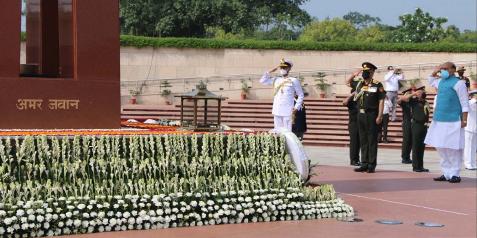 இதையொட்டி, டெல்லியில் உள்ள தேசிய போர் நினைவுச்சின்னத்தில் பாதுகாப்புத்துறை மந்திரி ராஜ்நாத் சிங், பாதுகாப்புத் துறை இணை மந்திரி ஸ்ரீபாத் நாயக் மற்றும் முப்படை தளபதிகள் மரியாதை செலுத்தினார்.
