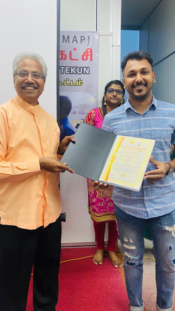 நடமாட்ட கட்டுப்பாட்டு ஆணை அமலில் இருந்தபோது, மிகவும் பாதிப்புக்கு ஆளான நளிவுற்ற குடும்பங்களுக்கு உணவுப் பண்டங்கள் உள்ளிட்ட அத்தியாவசிய பொருட்களை வீடு வீடாகச் சென்று வழங்கிய மலேசிய முன்னேற்றக் கட்சி(ஏம்ஏபி) உறுப்பினர்களையும் தன்னார்வ சேவையாளர்களையும் முன்னாள் அமைச்சருமான பொன்.வேதமூர்த்தி சான்றிதழ் வழங்கி கெளரவித்தார்.