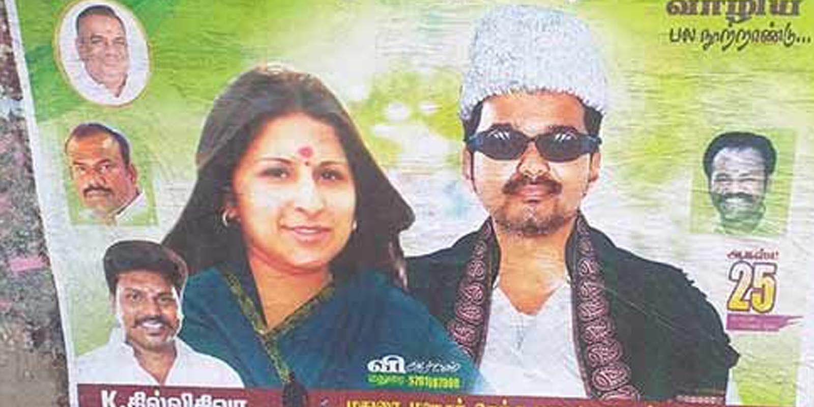 சில நாட்களுக்கு முன்னர் ஜெயலலிதா உருவத்தில் நடிகர் விஜய்யின் மனைவி சங்கீதாவையும், எம்ஜிஆர் உருவத்தில் விஜய்யையும் எடிட் செய்து போஸ்டர் ஓட்டப்பட்டு இருந்தது. விஜய் ரசிகர்கள் ஒட்டிய போஸ்டர் பெரும் அதிர்ச்சியை ஏற்படுத்தியது. இதற்கு விஜய் ரசிகர் மன்றம் உட்பட பலரும் எதிர்ப்பு தெரிவித்தனர். அதனைத்தொடர்ந்து விவேகானந்தரை போல விஜய்யை சித்தரித்து போஸ்டர் ஒட்டியதால் மீண்டும் சர்ச்சை கிளம்பியது.