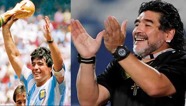 1986-ம் ஆண்டு உலக கோப்பையை வென்ற அர்ஜென்டினா அணியின் கேப்டனாக இருந்த மரடோனா உலக கால்பந்து அரங்கில் பிரேசில் ஜாம்பவான் பீலேவுக்கு நிகராக பார்க்கப்பட்டவர். 4 உலக கோப்பை போட்டியில் (1982, 1986, 1990, 1994) பங்கேற்றவரான அவர் அர்ஜென்டினா அணிக்காக 91 அனைத்துலக போட்டிகளில் விளையாடி 34 கோல்கள் அடித்துள்ளார். பார்சிலோனா, நபோலி, செவில்லா உள்ளிட்ட கிளப் அணிகளுக்காக களம் கண்டு இருக்கும் அவர் மொத்தம் 491 கிளப் போட்டிகளில் ஆடி 259 கோல்கள் அடித்து இருக்கிறார்.