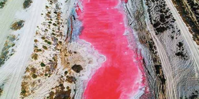 அப்போது அங்குள்ள கடற்கரை பகுதியில் சரயா தீவில் ஆளில்லா விமானத்தை வைத்து சோதனை செய்தபோது எதிர்பாராத வகையில் ஏரி ஒன்று இளஞ்சிவப்பு நிறத்தில் காட்சியளித்தது. இதை கவனித்தபோது அந்த ஏரியின் அகலம் 10 மீட்டராகவும், நீளம் 40 மீட்டராகவும் உள்ளது.