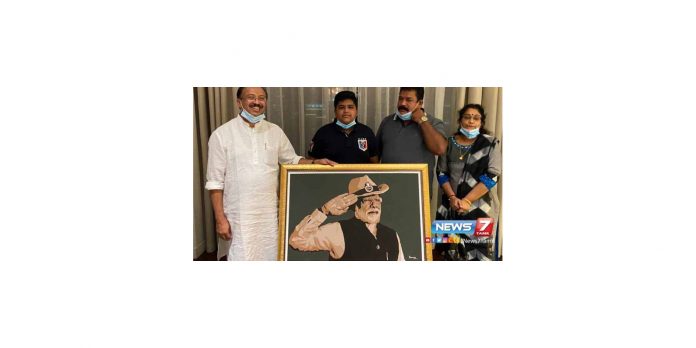 வெளியுறவுத்துறை இணை அமைச்சர் முரளிதரனிடம் இந்த ஓவியத்தை ஒப்படைத்துள்ளார். முரளிதரன் மூன்று நாள் பயணமாக ஐக்கிய அரபு அமீரகத்திற்கு சென்றுள்ளார். இந்த பயணத்தின் போது மாணவர் அவரை சந்தித்து தனது பரிசை வழங்கியுள்ளார்.