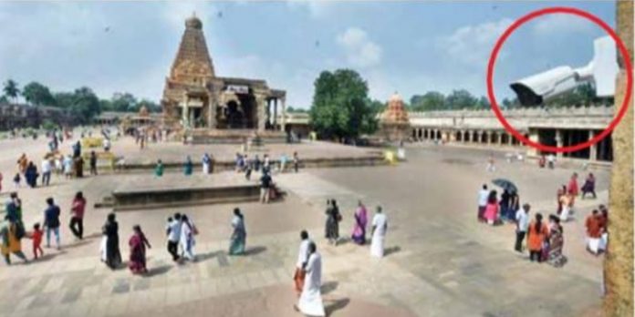 கும்பாபிஷேகத்தின்போது பொருத்தப்பட்ட கேமராக்களுக்கு இணைப்பு கொடுக்காததுடன், பழைய கேமராக்களும் பழுதாகி விட்ட நிலையில், தற்போது நான் கைந்து கேமராக்கள் மட்டுமே செயல்பட்டு வருகின்றன. இதனால், பெரிய கோயிலில் பாதுகாப்பு கேள்விக்குறியாக உள்ளதாக சமூக ஆர்வலர்கள் கவலை தெரிவித்துள்ளனர்.