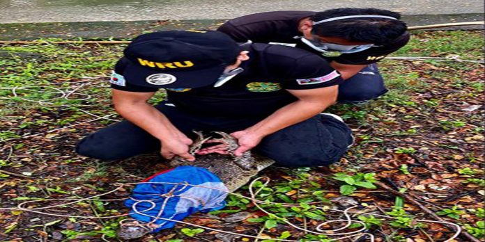 Renjer unit penyelamat hidupan liar negeri memerangkap reptilia sepanjang 2m itu di Taman Ujana Rimba Tropika semalam.