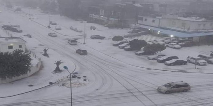 Menurut Pusat Meterologi Kebangsaan Libya, cuaca sejuk di bawah paras beku telah dicatatkan di beberapa bandar pada Isnin, termasuk Al-Bayda, Yefren, Nalut, Al-Marj, Gunung Hijau dan Gunung Nafusa.