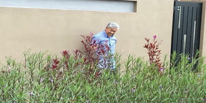 Pagi ini beliau mengambil kesempatan untuk menebas lalang yang semakin tinggi di kawasan tempat beliau menanam pokok-pokok bunga.