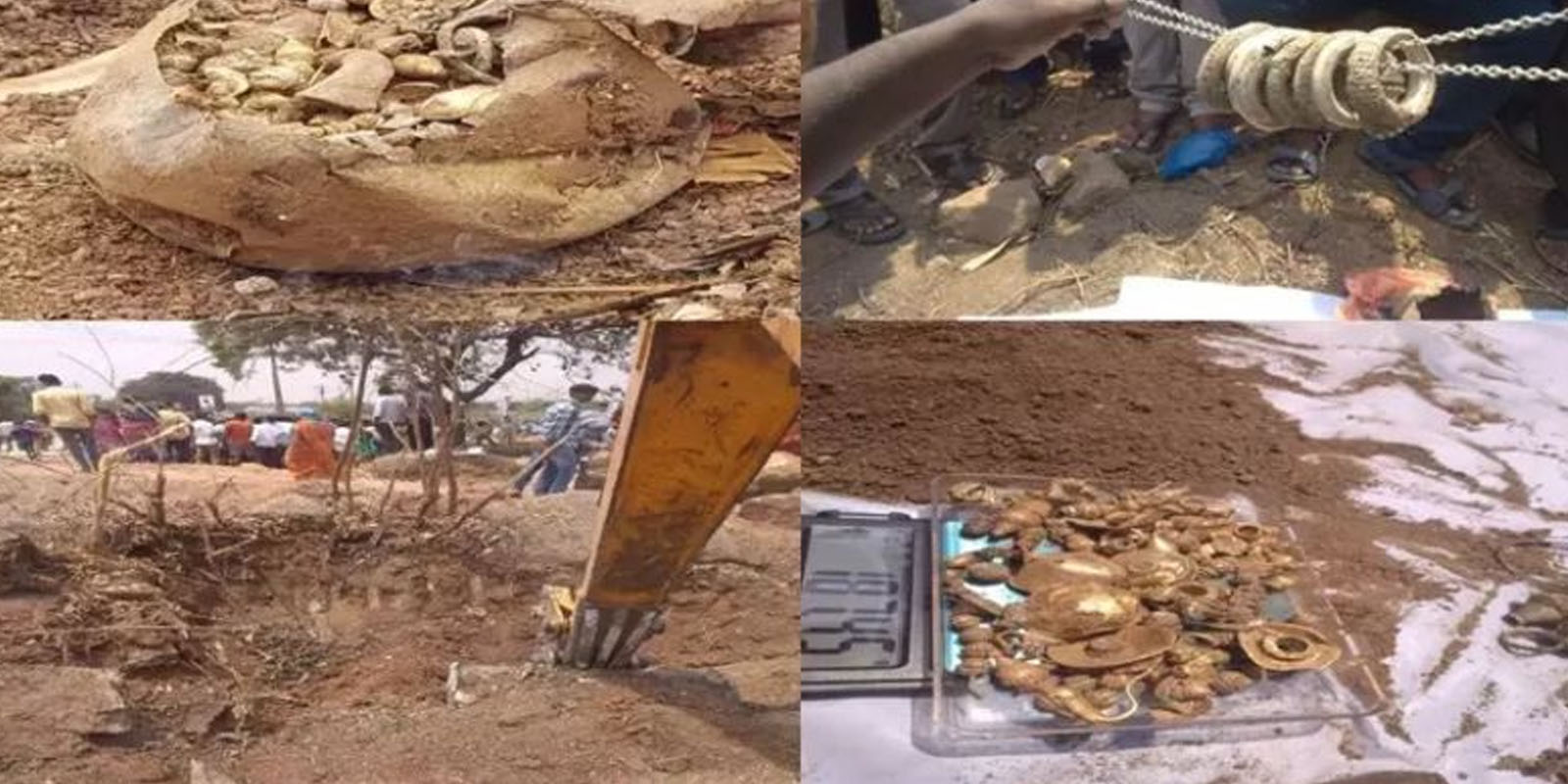 அதையடுத்து ஒரு வாரத்தில் அவர் நிலத்தை ஜேசிபி எந்திரம் வைத்து சமப்படுத்திய போது 5 கிலோ மதிப்புள்ள தங்கப் புதையல் கிடைத்துள்ளது.