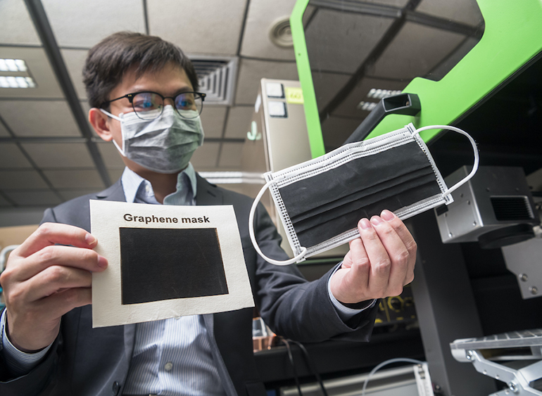 கிராபெனின் நானோ துகள்கள் கிருமிகளைக் கொல்ல பயன்படுத்தப்படுகின்றன, ஆனால் செதில்களைக் குறைத்து நுரையீரலில் உள்ளிழுக்க முடியும் என்றார். கிராபெனில் வைரஸ் மற்றும் பாக்டீரியா எதிர்ப்பு பண்புகள் இருப்பதாகக் கூறப்படுகிறது. ஆனால் அத்தகைய முகக்கவசம் பயன்படுத்துபவர்களின் சுவாசிப்பதில் சிரமம், தோல் எரிச்சல் மற்றும்” பூனை முடியில் சுவாசிப்பது போன்ற உணர்வுகளைப் பற்றி புகார் கூறியுள்ளனர்.