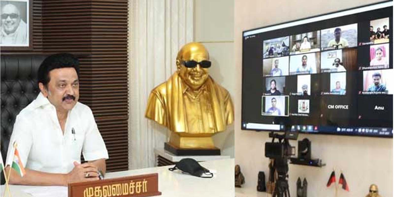 ஜப்பானில் நடைபெறும் ஒலிம்பிக் போட்டியில் பங்கேற்க உள்ள தமிழ்நாட்டைச் சேர்ந்த விளையாட்டு வீரர்கள், வீராங்கனைகளுடன் முதலமைச்சர் மு.க.ஸ்டாலின் காணொலி காட்சி மூலம் பேசினார். –