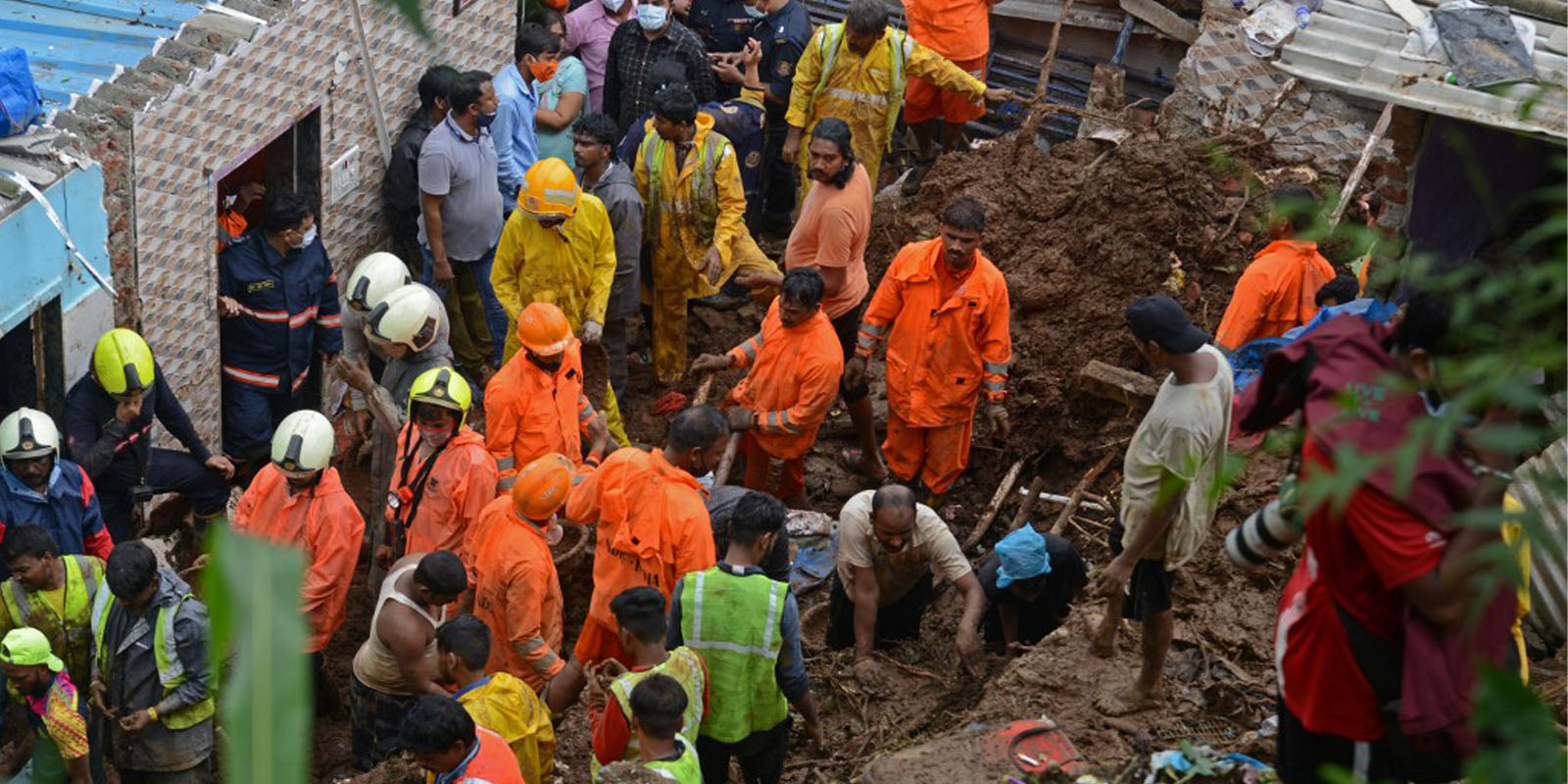 நகரின் வடகிழக்கில் உள்ள விக்ரோலியின் புறநகரில், ஞாயிற்றுக்கிழமை அதிகாலை ஐந்து வீடுகளில் நிலச்சரிவு ஏற்பட்டதில் 6 பேர் கொல்லப்பட்டதாக என்.டி.ஆர்.எஃப். அதிகாரிகள் தெரிவித்தனர். இந்தியாவின் ஜூன்-செப்டம்பர் பருவமழை காலத்தில் கட்டிட சரிவுகள் பொதுவானவை, பழைய மற்றும் கரடுமுரடான கட்டமைப்புகள் இடைவிடாத மழையின் நாட்களில் வீடுகள், கட்டடங்கள் இடிந்து விழுகின்றன.