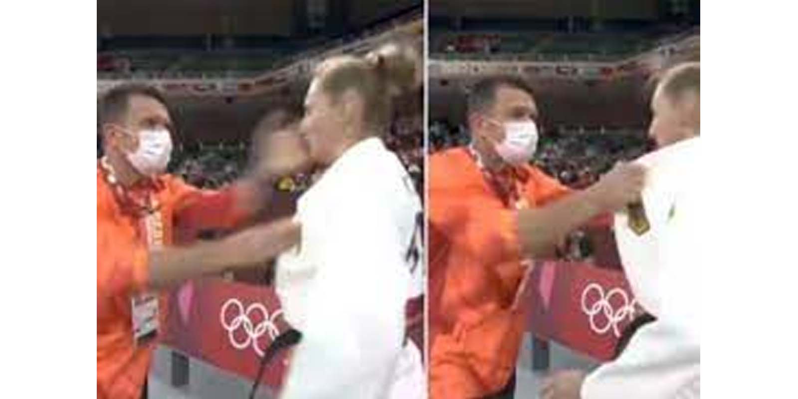 ஜப்பான் தலைநகர் டோக்கியோவில் இந்த ஆண்டிற்கான ஒலிம்பிக் போட்டிகள் கடந்த 23ஆம் தேதி தொடங்கியது. இதனிடையே போட்டியில் பங்கேற்பதற்காக சென்று கொண்டிருந்த ஜெர்மன் ஜூடோ வீராங்கனையான Martyna Trajdos அவரின் பயிற்சியாளர் Claudiu Pusa திடீரென கன்னத்தில் அடிக்கத் தொடங்கினார்.