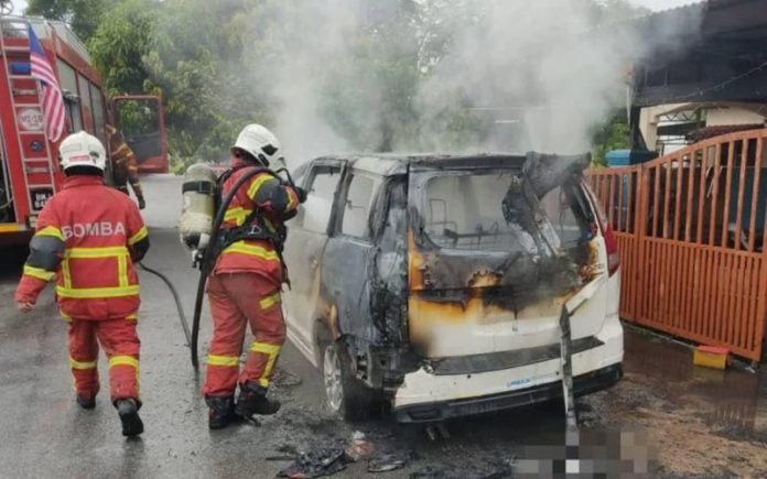 “Anaknya yang melihat kenderaan itu dipenuhi asap serta terdapat api di bahagian belakang membawa bapanya keluar dan ketika itu dia sudah tidak sedarkan diri.