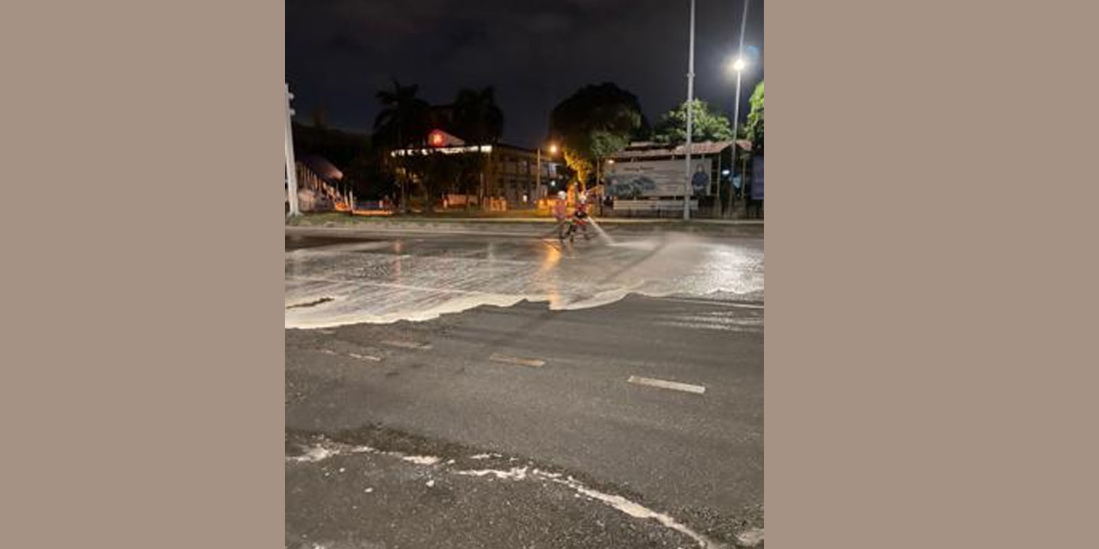 Kemudiannya, pasukan Hazmat menabur soda di sekitar kawasan yang terkena bahan kimia terbabit, katanya dalam satu kenyataan. Katanya, anggota terbabit sekali lagi melakukan semburan air bagi memastikan tidak ada sisa kimia yang tertinggal di situ. Operasi berjaya ditamatkan sepenuhnya pada jam 4 pagi katanya.