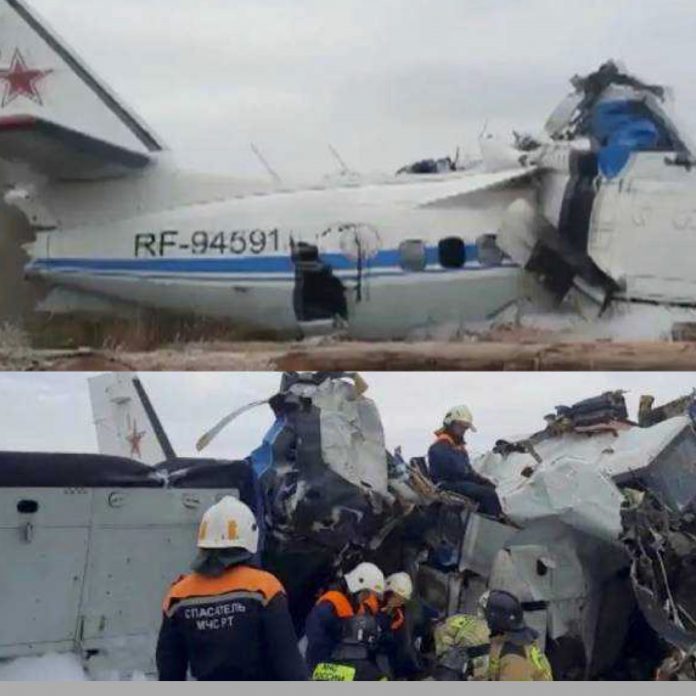 ரஷ்யாவில் பாராசூட் சாகச வீரர்களை ஏற்றிச் சென்ற L-410 விமானம் இன்று காலை 9.23 மணிக்கு மெண்செலின்ஸ்க் என்ற பகுதியில் திடீரென விபத்திற்குள்ளானது. இந்த விபத்தில் 6 பேர் படுகாயங்களுடன் உயிருடன் மீட்கப்பட்டுள்ளனர். மேலும், 16 பேரின் சடலங்கள் மீட்கப்பட்டுள்ளனர்.