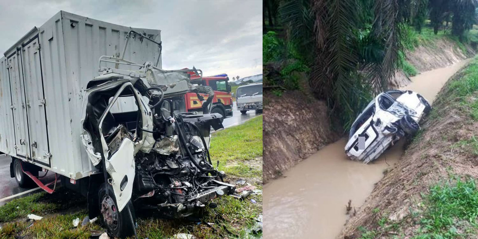 இரண்டாவதான Isuzu ரக லோரி, முதல் லோரியின் மீது மோதுவதைத் தவிர்க்க முயன்றதால், அதன் ஓட்டுநர் மற்றும் உதவியாளருக்கு மரணத்தை விளைவித்தது.