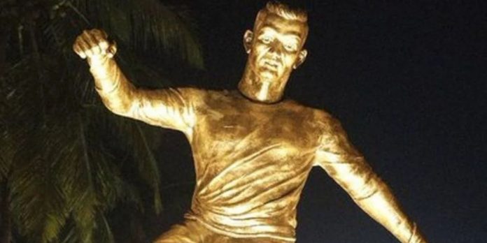 கோவா: போர்ச்சுகல் கால்பந்து நட்சத்திரம் கிறிஸ்டியானோ ரொனால்டோவுக்கு இந்தியாவில் புதிதாக கட்டப்பட்டுள்ள சிலை பல்வேறு பிரச்சினைகளை ஏற்படுத்தியுள்ளது. கோவா மாநிலத்தின் மேற்குப் பகுதியில் அமைந்துள்ள கால்பந்து விளையாட்டு அங்கு மிகவும் பிரபலமாக உள்ளது இந்த சிலை இருப்பது இளைஞர்களை ஊக்குவிக்கும் என்று நம்பப்படுகிறது.