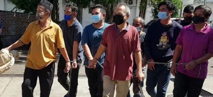 குற்றம் சாட்டப்பட்ட, உள்ளூர்வாசிகளான ஹாசிம் சைனி, 50; முகமட் ஃபதில் ஜைதி, 29; ரோயன்டோ கோன்சிங், 61; போர்ஹான் தாஹிர், 58; அலியாஸ் உமர், 59; ஆண்டிஸ் அப்பாஸ், 53; மற்றும் மாமட் முலாமட் , 45, ஆகியோர் மார்ச் 3 ஆம் தேதி காலை 6.03 மணியளவில், கலாபக்கானில் உள்ள சாலைத் தடுப்புச் சோதனைச் சாவடியில், 44 இந்தோனேசியர்களை கூட்டாக கடத்தியதாக குற்றம் சாட்டப்பட்டது.