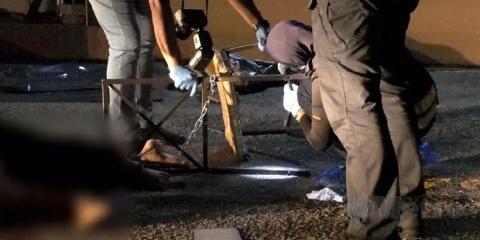 ஜார்ஜ்டவுன், ஜெலுத்தோங் அபார்ட்மென்ட் ஈஸ்டர்ன் கோர்ட்டின் எட்டாவது மாடியில் இருந்து நேற்று, இடது கால் சங்கிலியால் பிணைக்கப்பட்ட நிலையில் குடியிருப்பின் வாகன நிறுத்துமிடத்தில் இந்தோனேசிய நபர் விழுந்து இறந்து கிடந்தார். மேலும் தலையில் காயங்களிலிருந்து இரத்தத்தின் தடயங்கள் காணப்பட்டன.