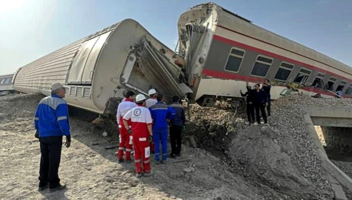 கிழக்கு ஈரான் தபாஸ்நகரத்தில் இருந்து யாஸ்ட் நகரத்திற்கு சென்றுகொண்டிருந்த பயணிகள் ரெயில், தபாஸ் நகரத்தில் இருந்து 50 கிமீ தொலைவில் தண்டவாளத்தில் இருந்து இறங்கி திடீரென விபத்துக்குள்ளானது.