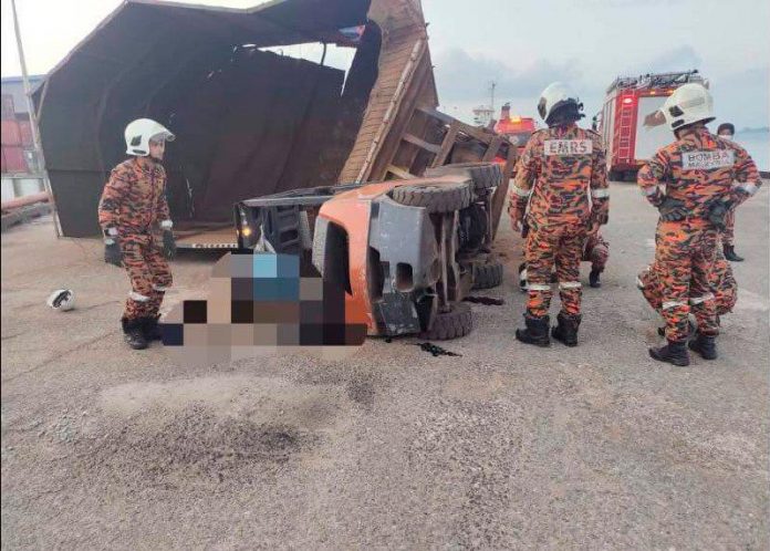சண்டகன் துறைமுகத்தில் இன்று அதிகாலை வேலை செய்து கொண்டிருந்த போர்க்லிப்ட் ஓட்டுநர் மீது கனரக இயந்திரம் கவிழ்ந்ததால் நசுங்கி பலியானார். தீயணைப்பு மற்றும் மீட்புத் துறையின் அறிக்கையின்படி, பாதிக்கப்பட்ட சைட் ஹாசன் 60, ஃபோர்க்லிஃப்ட்டை இயக்கிக்கொண்டிருந்தார்.