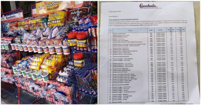 சில்லறை விற்பனையாளருக்கு அனுப்பப்பட்ட கார்டேனியா ரொட்டி தயாரிப்புகளின் விலையில் மாற்றம் குறித்த கடிதம் சமூக ஊடகங்களில் பெரிதும் பகிரப்பட்டது மேலும் @KlutzyKucing என்ற பெயரில் டுவிட்டர் பயனரால் பகிரப்பட்டிருந்தது குறிப்பிடத்தக்கது.