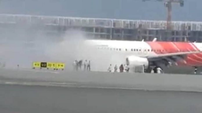 மஸ்கட்டில் இருந்து கொச்சிக்கு புறப்பட இருந்த ஏர் இந்தியா எக்ஸ்பிரஸ் விமானத்தில் இருந்து புகை வெளியேறத் தொடங்கியதையடுத்து, விமானத்தில் இருந்து பயணிகள் உடனடியாக அவசர கால வெளியேறும் வழியாக வெளியேற்றப்பட்டனர். அவசரகால சூழ்நிலையைத் தொடர்ந்து மஸ்கட் விமான நிலையத்தில் சம்பந்தப்பட்ட அதிகாரிகளுடன் சிவில் விமானப் போக்குவரத்து ஆணையம் ஆலோனை நடத்தி வருகிறது.