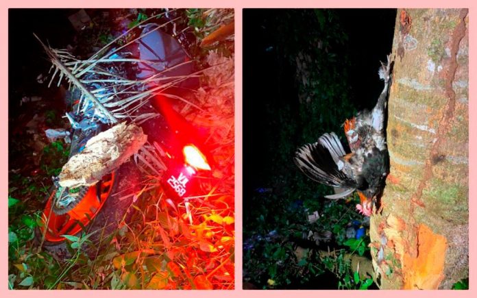 மோட்டார் சைக்கிள் மீது காட்டுக்கோழி மோதிய விபத்தில் தந்தை மற்றும் மகன் பலி