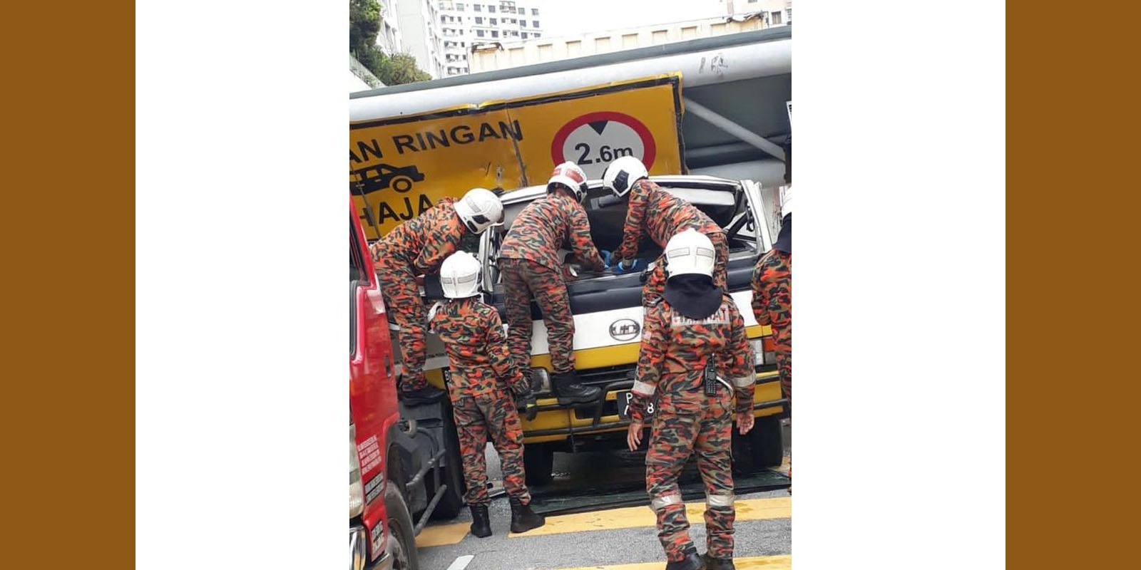 அந்த நபரின் லோர் பெயர் பலகை மீது மோதியதாக நம்பப்படுகிறது, இதனால் அது நொறுங்கி வாகனத்தின் மீது விழுந்தது என்று செய்தித் தொடர்பாளர் ஒரு அறிக்கையில் தெரிவித்தார். பிற்பகல் 3.20 மணியளவில் பொதுமக்களிடமிருந்து திணைக்களத்திற்கு அழைப்பு வந்ததை அடுத்து, பயா தெர்போங் மற்றும் பயான் பாரு தீயணைப்பு நிலையங்களில் இருந்து மீட்புப் பணியாளர்கள் அந்த இடத்திற்கு அனுப்பி வைக்கப்பட்டதாக அவர் மேலும் கூறினார்.