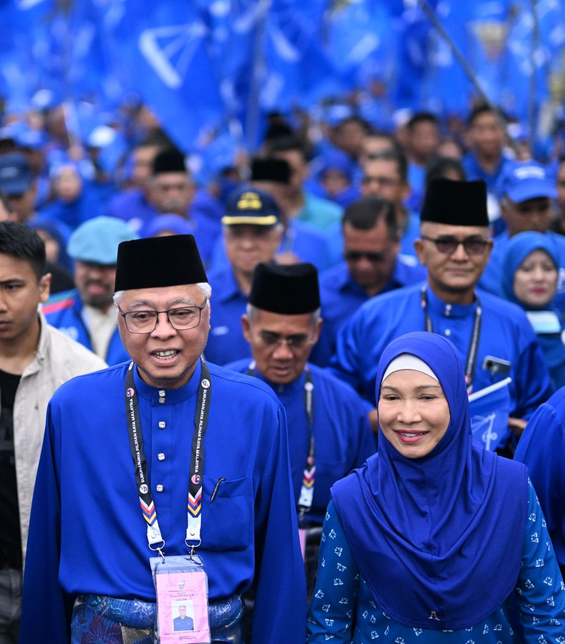 இஸ்மாயில் சப்ரி காலை 8.31 மணியளவில் அவரது மனைவி டத்தின் ஶ்ரீ முஹைனி ஜைனல் அபிதினுடன் டத்தாரான் கெராயோங்கிற்கு வந்தடைந்தார் மற்றும் 2,000 ஆதரவாளர்கள் அவரை வரவேற்றனர்.
