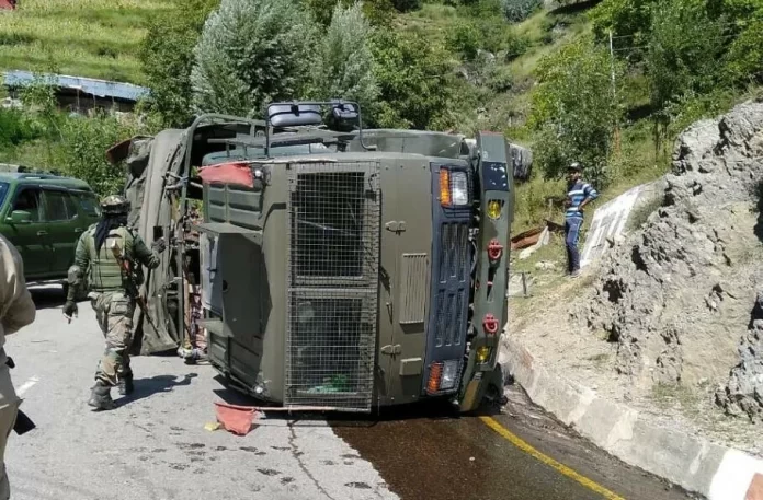 இராணுவ வீரர்கள் பயணம் செய்த லோரி விபத்துக்குள்ளாகி பக்கவாட்டு சாலையில் கவிழ்ந்தது. இதனால் வாகனத்தில் இருந்த 18 வீரர்கள் காயமடைந்தனர். அவர்கள் அனைவரும் சிகிச்சைக்காக மருத்துவமனைக்கு கொண்டு செல்லப்பட்டனர்.