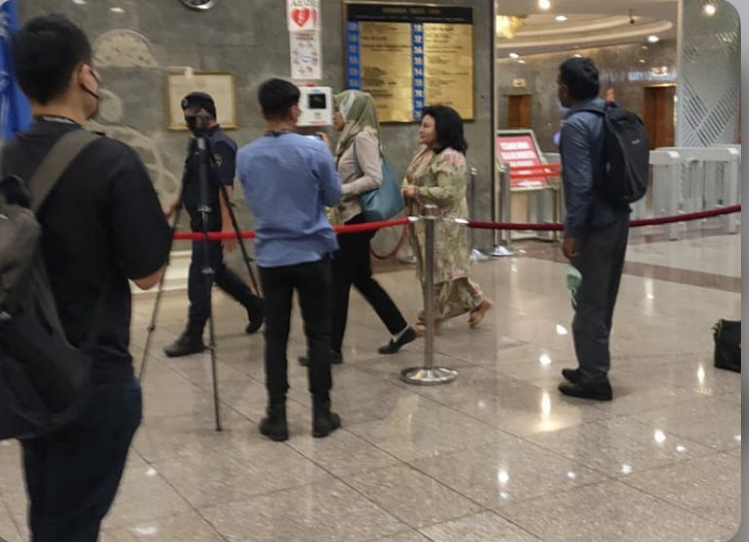 முன்னாள் பிரதமர் டத்தோஸ்ரீ நஜிப் ரசாக்கின் மனைவி ஒரு பெண் உதவியாளருடன் வந்திருந்தார். சுற்றிவளைக்கப்பட்ட லிப்ட் பகுதிக்கு விறுவிறுப்பாக நடந்து சென்ற அவர், தனது புகைப்படத்தை எடுக்க வேண்டாம் என்று ஊடகங்களிடம் கூறியது கேட்டது.