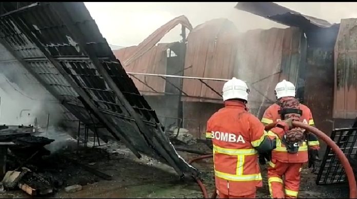 கம்போங் மெகாட் செகாமாவில் உள்ள ஜாலான் ரிவர்ஸில் ஏற்பட்ட தீ விபத்தில் வெல்டிங் கடை, மோட்டார் சைக்கிள் பழுதுபார்க்கும் கடை மற்றும் தளபாடங்கள் விற்கும் கடைகளை உட்படுத்திய மூன்று வளாகங்கள் எரிந்து நாசமானது.