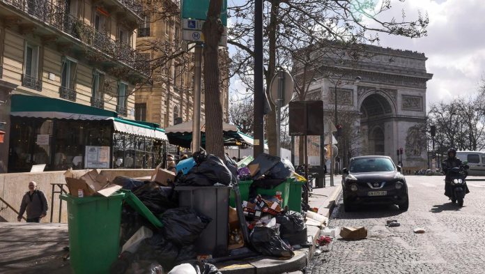 இந்த நிலையில் தூய்மை பணியாளர்களும் கடந்த சில தினங்களாக தங்களது பணியை புறக்கணித்து போராட்டத்தில் ஈடுபட்டு உள்ளனர். இதனால் தலைநகரான பாரீசில் குப்பைகள் அகற்றப்படாமல் மலைபோல் குவிந்து கிடக்கின்றன. மேலும் நகரின் முக்கிய சாலைகள், வீதிகள் குப்பைகளால் நிரம்பி துர்நாற்றம் அடிக்கிறது. சுமார் 7 ஆயிரம் டன் குப்பைகள் அகற்றப்படாமல் கிடப்பதாக கூறப்படுகிறது.
