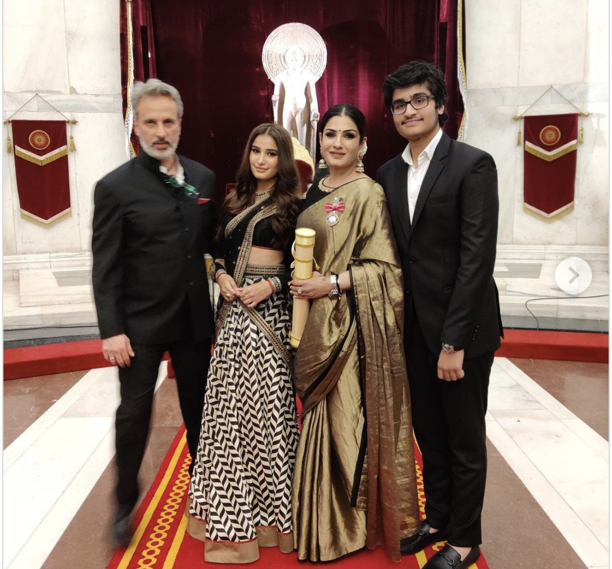 குடியரசுத் தலைவர் மாளிகையில் கீரவாணியுடன் சேர்ந்து எடுத்த புகைப்படத்தை சமூக வலைதளத்தில் வெளியிட்டு, என் அண்ணனை நினைத்து மிகவும் பெருமையாக இருக்கிறது என தெரிவித்துள்ளார் ராஜமவுலி. நேற்றைய விழாவில் கீரவாணிக்கு மட்டும் அல்ல பிரபல பாலிவுட் நடிகையான ரவீணா டாண்டனுக்கும் பத்மஸ்ரீ விருது வழங்கப்பட்டது.