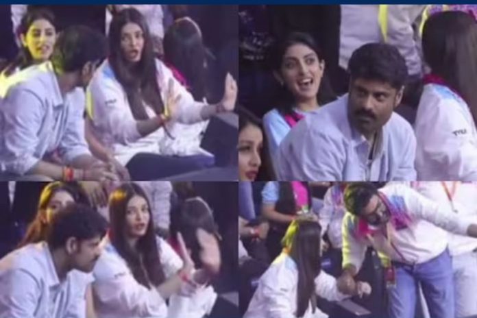 இந்த நிலையில் ஐஸ்வர்யா ராய்யின் வீடியோ ஒன்று சமூக வலைதளங்களில் வைரலாகிவருகிறது. புரோ கபடி லீக் போட்டி ஒன்றில் தனது கணவர் அபிஷேக் பச்சனின் ஜெய்பூர் பிங்க் பாந்தர்ஸ் அணி விளையாடும் போட்டியைக் காண வந்திருந்தார். அவருடன் அபிஷேக் பச்சன், மகள் ஆராத்யா மற்றும் அபிஷேக்கின் சகோதரியின் மகள் நவ்யா நந்தா உடனிருந்தனர்.