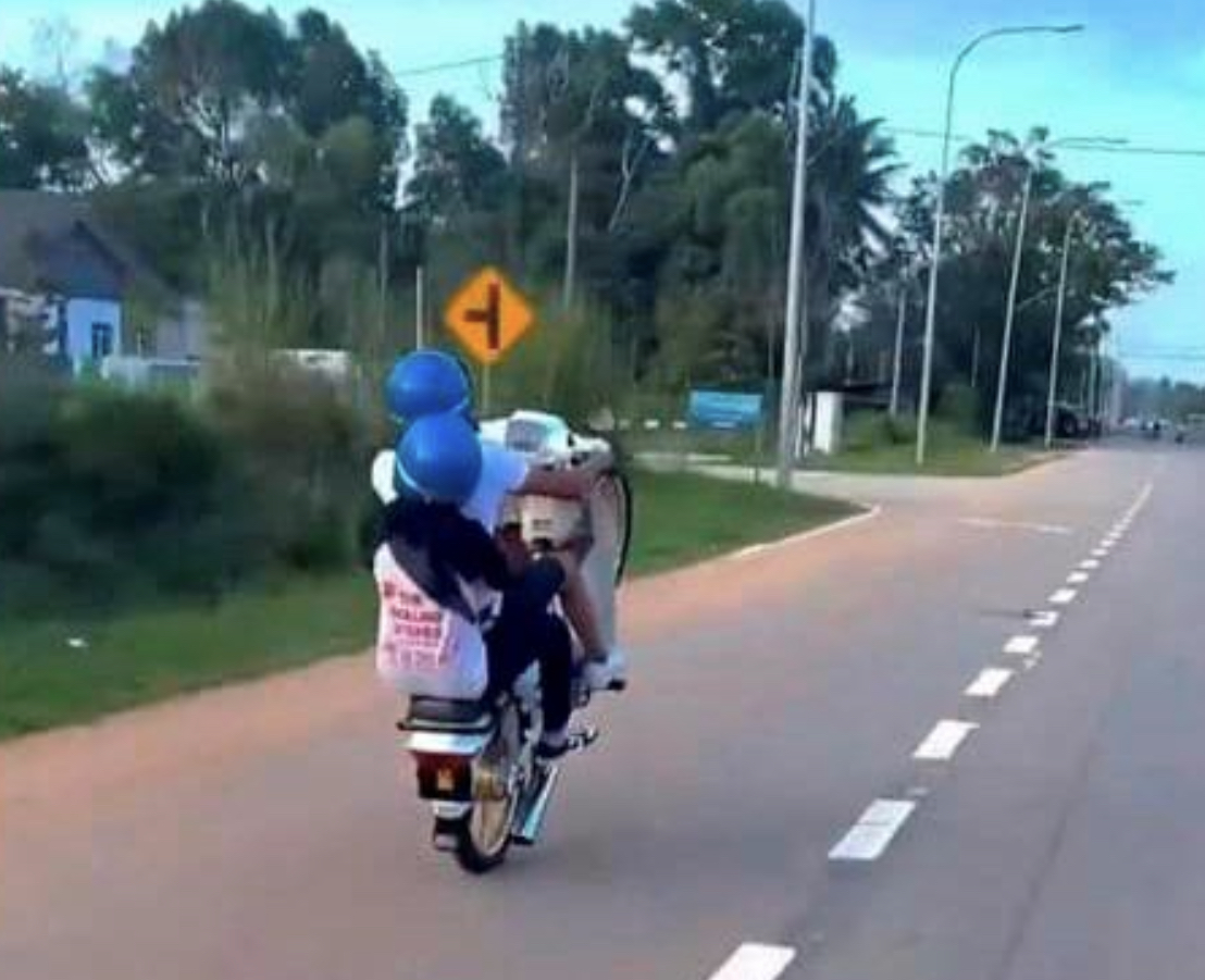 ஒரு நிமிடம் நீளமான வீடியோவில், வெள்ளை நிற ஹோண்டா EX-5 மோட்டார்சைக்கிளில் ஒரு பெண் பயணியுடன் ஒரு ஆண் ரைடர் ஜலான் செந்தோரில் இருந்து தெரெங்கானுவில் உள்ள கெமாமனுக்குச் சென்று ‘வீலி’ செய்வதைக் காட்டியது.