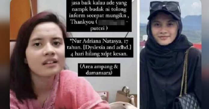 கிள்ளான் உத்தரா காவல்துறையின் தலைமை உதவி ஆணையர் எஸ். விஜய ராவ் கூறுகையில், இளம்பெண் நூர் அட்ரியானா நடஸ்யா 17, பேராக்கில் உள்ள ஊத்தான் மெலிந்தாங்கில் அவரது குடும்பத்தினர் வசித்து வந்தனர்.
