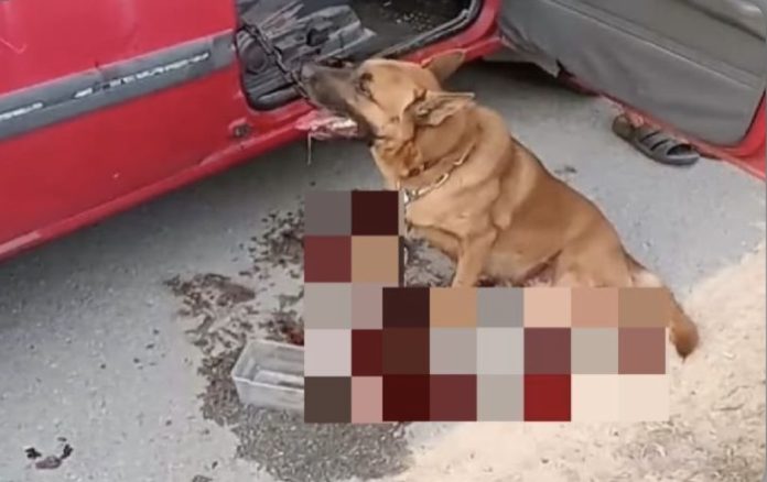 துரியன் தோட்டம் மற்றும் இயற்கையை ரசித்தல் நாற்றங்கால் வைத்திருக்கும் நபர், மே 27 அன்று தனது வாகனத்தில் கட்டப்பட்டிருந்த நாயை ஒரு இடத்திலிருந்து மற்றொரு இடத்திற்கு இழுத்துச் சென்றுள்ளார். இது சுமார் இரண்டு கிலோமீட்டர் தொலைவில் இருந்தது.