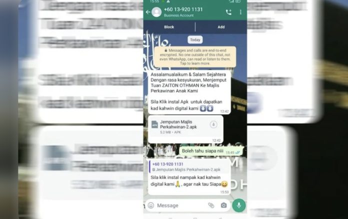 அதே செய்தியில், மோசடி செய்பவர் பாதிக்கப்பட்ட நபரிடம் டிஜிட்டல் அழைப்பிதழ் அட்டையைப் பெற, APK (Android Package File)ஐக் கிளிக் செய்து நிறுவுமாறு கூறினார்.