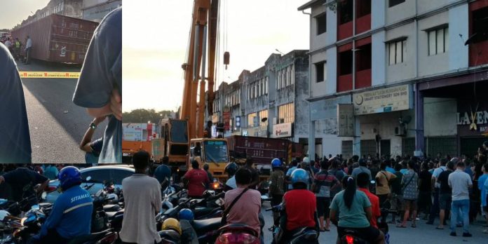 சரக்குகளை இறக்கும் நோக்கத்தில் கடை ஒன்றின் வெளியே இந்த கொள்கலன் வைக்கப்பட்டுள்ளதாக அவர் கூறினார். சில நிமிடங்களுக்குப் பிறகு, பாதிக்கப்பட்டவர் கொள்கலன் சற்று சாய்ந்திருப்பதைக் கவனித்தார். எனவே அவர் தனது காரை நகர்த்த முடிவு செய்தார்.