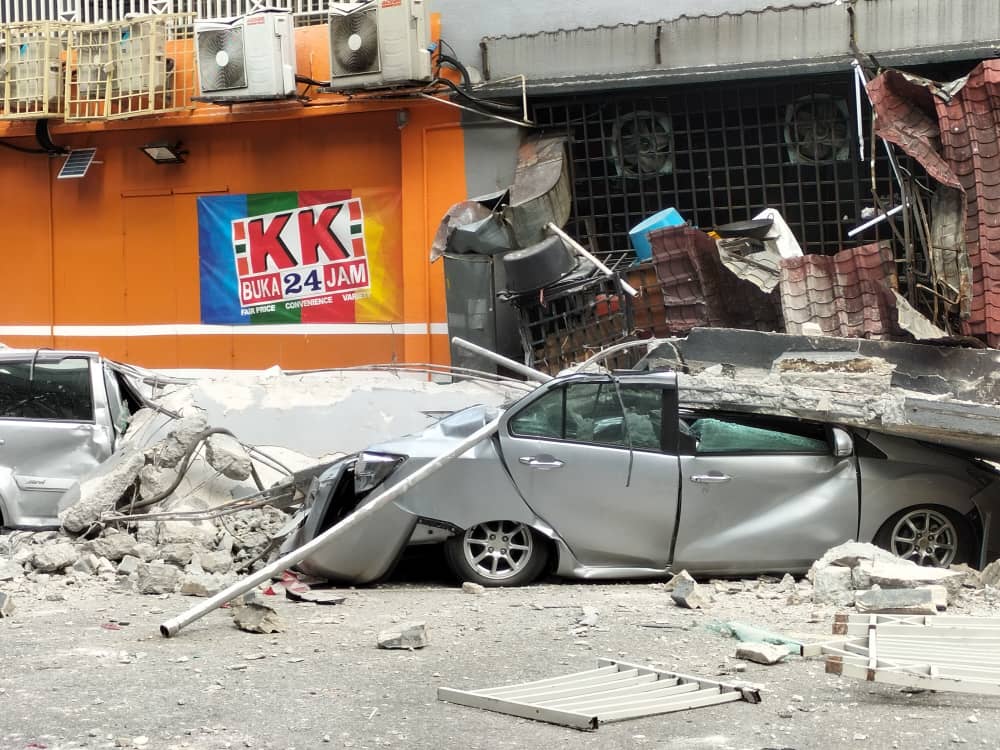 இங்குள்ள ஜாலான் கூச்சாய் லாமாவில் உள்ள ஐந்து மாடி வர்த்தக கட்டிடத்தின் மேற்கூரையில் அமைக்கப்பட்ட பீம் அமைப்பு, நேற்று இரவு இடிந்து விழுந்ததில் குறைந்தது 10 வாகனங்கள் கடுமையாக சேதமடைந்தன.ஆனால் அதிஷ்டவசமாக அங்கு உயிர்ச்சேதம் எதுவும் ஏற்படவில்லை.