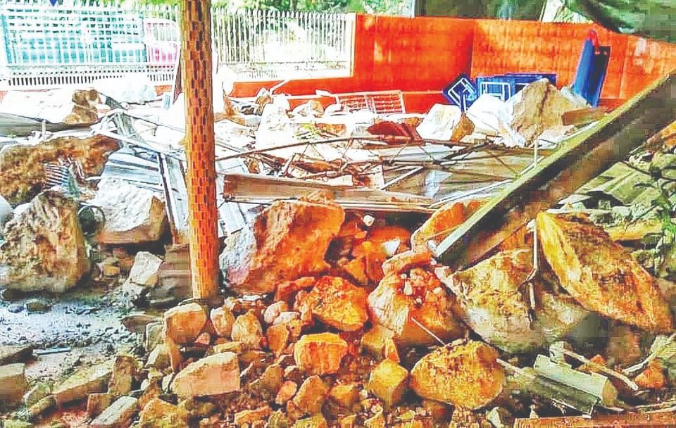 Kuil Kallumalai Sri Jada Muneeswarar di Penang mengalami kerosakan teruk akibat ditimpa dengan batu batan bukit.