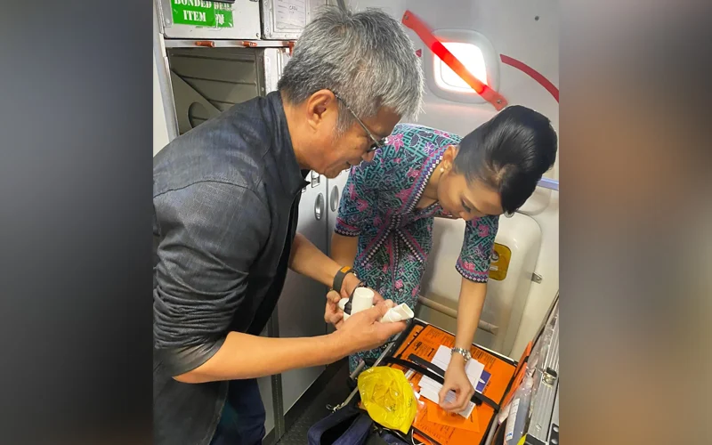 அந்தப் பெண்ணுக்கு ஆஸ்துமா பாதிப்பு இருந்தது. அவளுக்கு இன்ஹேலர் அல்லது நெபுலைசர் தேவைப்பட்டது. அதிர்ஷ்டவசமாக ஒரு பயணியிடம் இன்ஹேலர் இருந்தது என்று இருதயநோய் நிபுணர் இன்று ஒரு பேஸ்புக் பதிவில் பகிர்ந்துள்ளார். இருப்பினும், இன்ஹேலரின் சில பஃப்களுக்குப் பிறகும், அந்தப் பெண்ணுக்கு மூச்சு விடுவதில் சிரமம் இருந்தது.