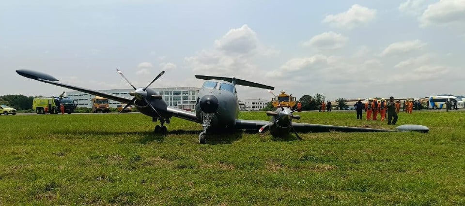 Sebuah pesawat jenis Beechcraft B 200T milik Tentera Udara Diraja Malaysia (TUDM) melakukan pendaratan cemas di Lapangan Terbang Sultan Abdul Aziz Shah, Subang dekat sini, tengah hari tadi.