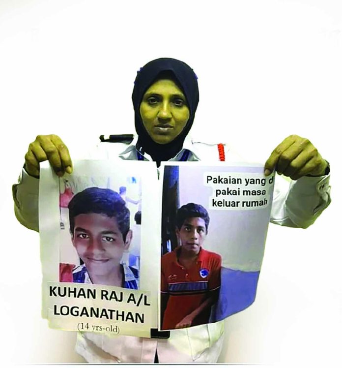 Budak yang bernama Kuhan Raj A/L Loganathan berumur 14 tahun keluar dari rumahnya dengan perasaan marah pada Jumaat lalu masih tak balik ke rumahnya. Ibu Kuhan, Saratha (40 tahun) membuat laporan polis mengenai perkara itu.