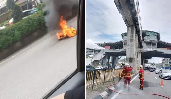 Sepasukan anggota bomba dari Balai Bomba dan Penyelamat (BBP) Titiwangsa bersama sebuah jentera kemudiannya dikejarkan ke lokasi kejadian. Setibanya di lokasi didapati terdapat tayar monorel terjatuh dan terbakar,katanya melalui kenyataan.